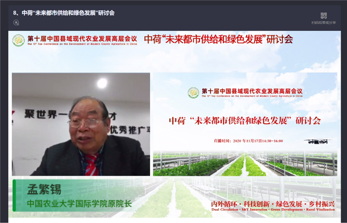 020年11月17日上午,第十屆中國縣域現(xiàn)代農(nóng)業(yè)發(fā)展高層會議專題研討會三“國際設施農(nóng)業(yè)可持續(xù)發(fā)展研討會”成功舉行。研討會由中國農(nóng)業(yè)大學設施農(nóng)業(yè)工程技術研究中心、......