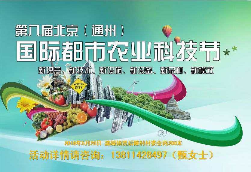 2018年5月19日-20日,將在北京國際都市農業科技園舉辦“第八屆北京(通州)國際都市農業科技節”,統籌國內外農業科技資源,通過“政、產、學、研、用”協同發展......