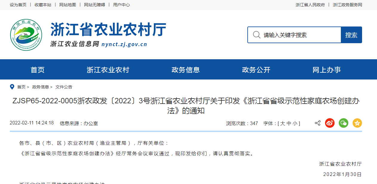 浙江省家庭農(nóng)場(chǎng)名錄管理辦法第一章 總 則第一條 為規(guī)范家庭農(nóng)場(chǎng)名錄管理,引導(dǎo)和促進(jìn)家庭農(nóng)場(chǎng)高質(zhì)量發(fā)展,根據(jù)中央和省委、省政府培育發(fā)展家庭農(nóng)場(chǎng)有關(guān)文件精神,制......