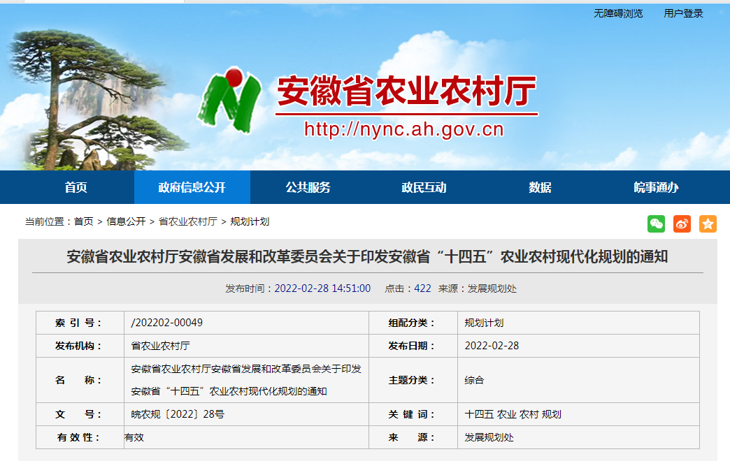 安徽省“十四五”農(nóng)業(yè)農(nóng)村現(xiàn)代化規(guī)劃安徽要強(qiáng)農(nóng)業(yè)必須強(qiáng),安徽要美農(nóng)村必須美,安徽要富農(nóng)民必須富。為加快推進(jìn)農(nóng)業(yè)農(nóng)村現(xiàn)代化,依據(jù)國(guó)家《“十四五”推進(jìn)農(nóng)業(yè)農(nóng)村現(xiàn)代化規(guī)......