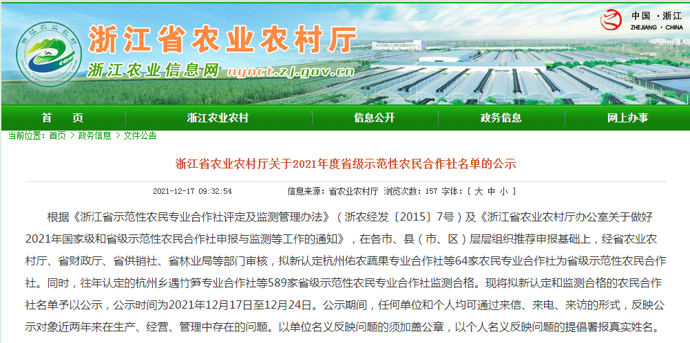 根據《浙江省示范性農民專業合作社評定及監測管理辦法》(浙農經發〔2015〕7號)及《浙江省農業農村廳辦公室關于做好2021年國家級和省級示范性農民合作社申報與監......