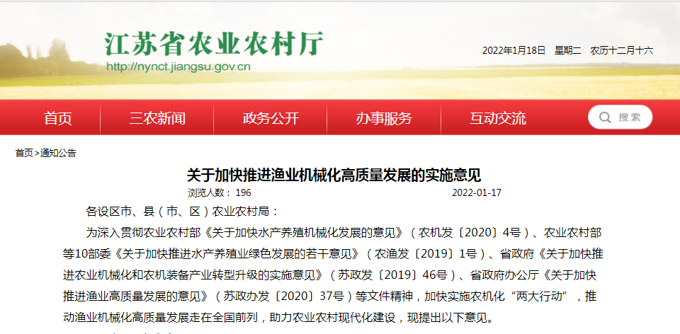各設區市、縣(市、區)農業農村局:為深入貫徹農業農村部《關于加快水產養殖機械化發展的意見》(農機發〔2020〕4號)、農業農村部等10部委《關于加快推進水產養殖......