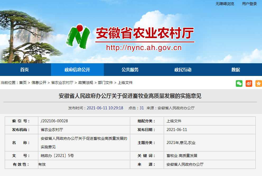 各市、縣人民政府,省政府各部門、各直屬機(jī)構(gòu):為貫徹落實《國務(wù)院辦公廳關(guān)于促進(jìn)畜牧業(yè)高質(zhì)量發(fā)展的意見》(國辦發(fā)〔2020〕31號)精神,加快推動畜牧業(yè)高質(zhì)量發(fā)展,......