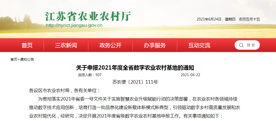 各設(shè)區(qū)市、縣(市、區(qū))農(nóng)業(yè)農(nóng)村局:為貫徹落實全國“互聯(lián)網(wǎng)+”農(nóng)產(chǎn)品出村進(jìn)城工程工作視頻會議精神,按照省農(nóng)業(yè)農(nóng)村廳、發(fā)展改革委、財政廳、商務(wù)廳印發(fā)的《江蘇省“互聯(lián)......