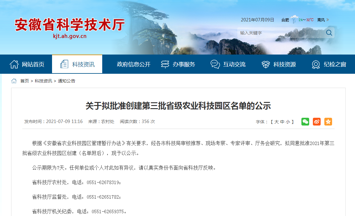 根據(jù)《安徽省農(nóng)業(yè)科技園區(qū)管理暫行辦法》有關(guān)要求,經(jīng)各市科技局審核推薦、現(xiàn)場考察、專家評審、廳務(wù)會研究,擬同意批準(zhǔn)2021年第三批省級農(nóng)業(yè)科技園區(qū)創(chuàng)建(名單附后)......