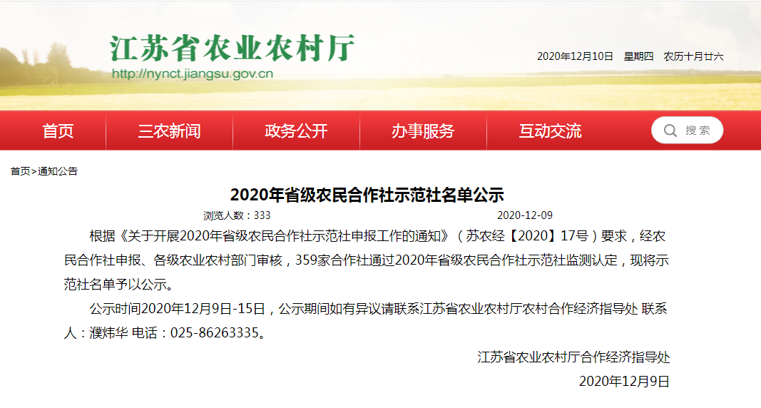 根據(jù)《關(guān)于開展2020年省級農(nóng)民合作社示范社申報(bào)工作的通知》(蘇農(nóng)經(jīng)【2020】17號)要求,經(jīng)農(nóng)民合作社申報(bào)、各級農(nóng)業(yè)農(nóng)村部門審核,359家合作社通過2020......