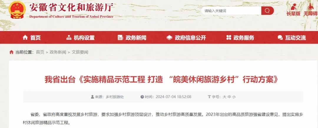 為推動全省鄉(xiāng)村旅游發(fā)展提質(zhì)增效,更好滿足人民群眾旅游消費(fèi)升級需求,安徽省委、省政府高度重視發(fā)展鄉(xiāng)村旅游,要求加強(qiáng)鄉(xiāng)村旅游頂層設(shè)計,推動鄉(xiāng)村旅游高質(zhì)量發(fā)展,......