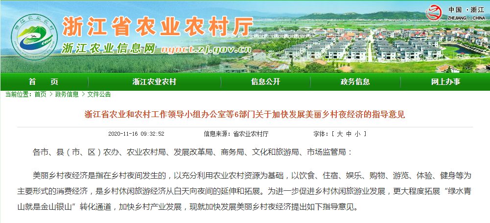 浙江省農業和農村工作領導小組辦公室等6部門關于加快發展美麗鄉村夜經濟的指導意見 各市、縣(市、區)農辦、農業農村局、發展改革局、商務局、文化和旅游局、市場監管......