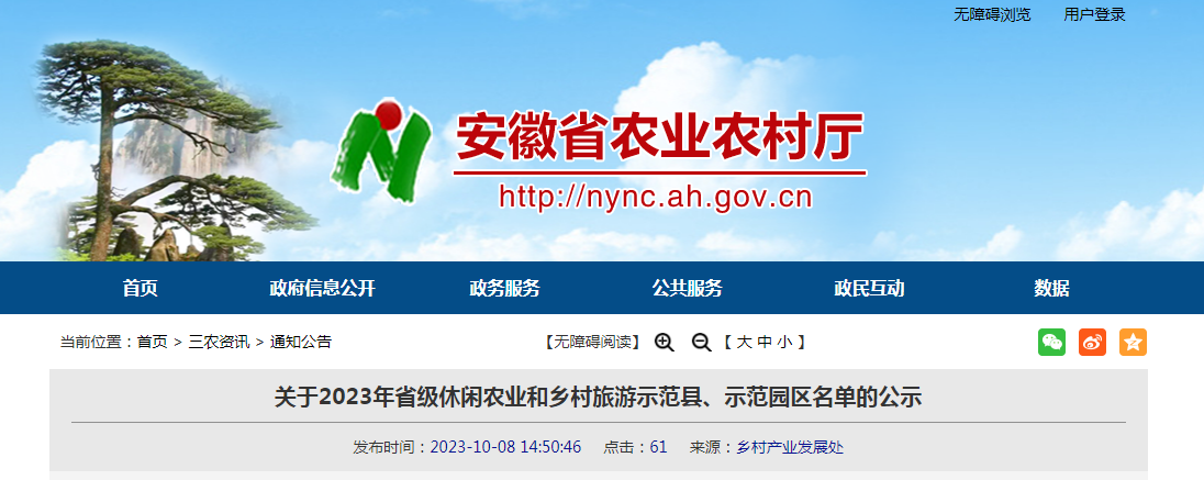 按照省農業農村廳《關于做好2023年省級休閑農業和鄉村旅游示范縣、示范園區申報和監測工作的通知》(皖農產函〔2023〕501號)要求,各市農業農村局認真組織申報......