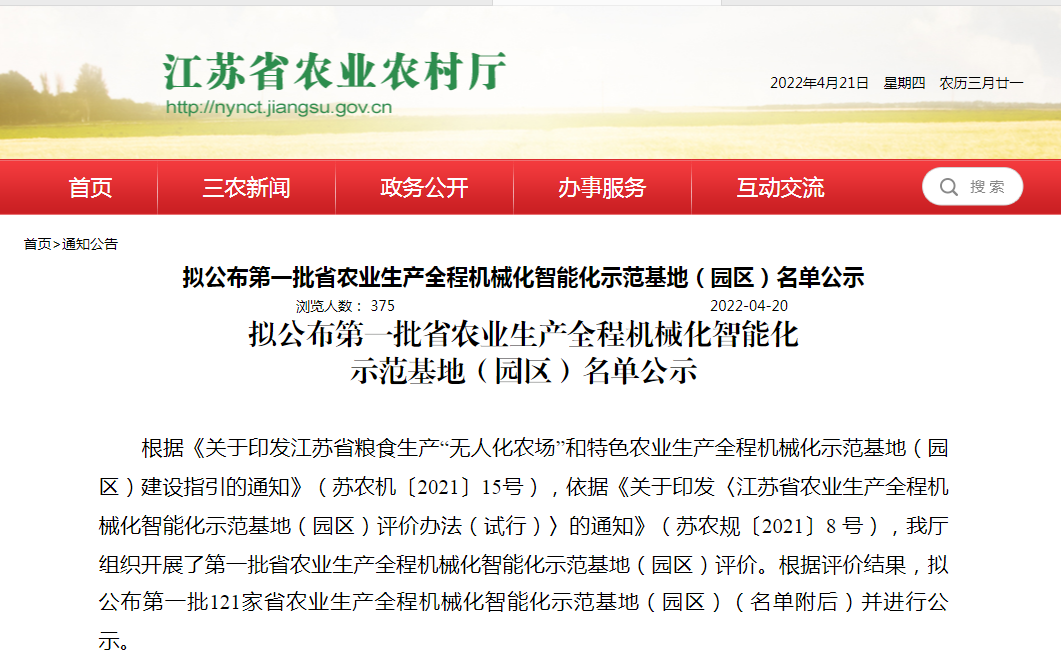 根據(jù)《關(guān)于印發(fā)江蘇省糧食生產(chǎn)“無人化農(nóng)場(chǎng)”和特色農(nóng)業(yè)生產(chǎn)全程機(jī)械化示范基地(園區(qū))建設(shè)指引的通知》(蘇農(nóng)機(jī)〔2021〕15號(hào)),依據(jù)《關(guān)于印發(fā)〈江蘇省農(nóng)業(yè)生產(chǎn)全......