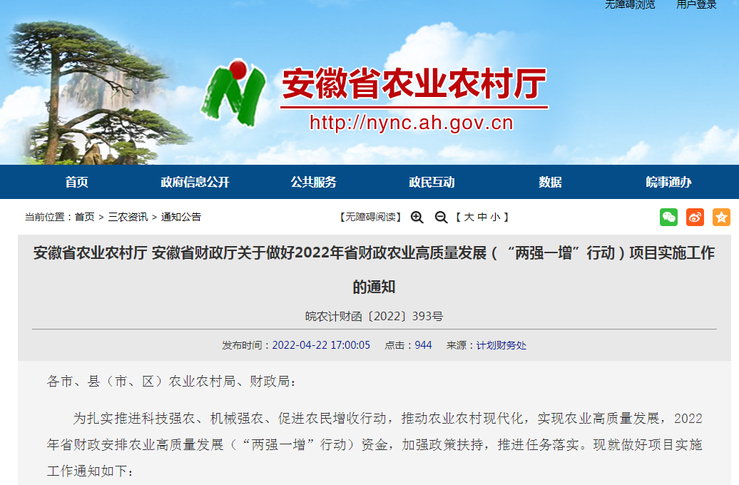 各市、縣(市、區(qū))農(nóng)業(yè)農(nóng)村局、財(cái)政局:????為扎實(shí)推進(jìn)科技強(qiáng)農(nóng)、機(jī)械強(qiáng)農(nóng)、促進(jìn)農(nóng)民增收行動(dòng),推動(dòng)農(nóng)業(yè)農(nóng)村現(xiàn)代化,實(shí)現(xiàn)農(nóng)業(yè)高質(zhì)量發(fā)展,2022年省財(cái)政安排農(nóng)業(yè)高......