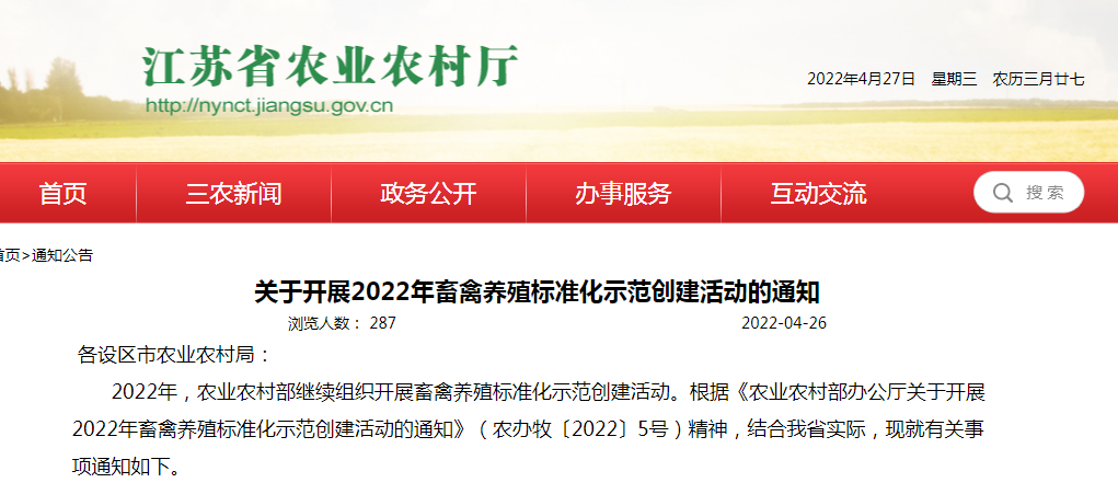 各設(shè)區(qū)市農(nóng)業(yè)農(nóng)村局:2022年,農(nóng)業(yè)農(nóng)村部繼續(xù)組織開展畜禽養(yǎng)殖標(biāo)準(zhǔn)化示范創(chuàng)建活動(dòng)。根據(jù)《農(nóng)業(yè)農(nóng)村部辦公廳關(guān)于開展2022年畜禽養(yǎng)殖標(biāo)準(zhǔn)化示范創(chuàng)建活動(dòng)的通知》(......