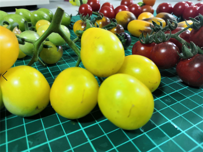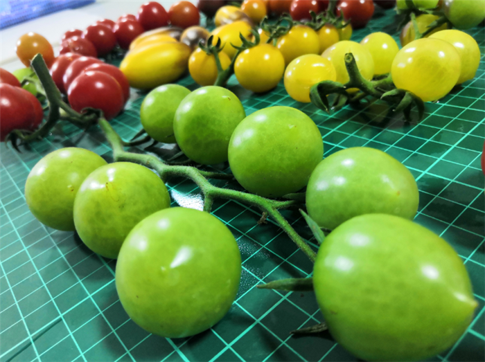 ▼中農富通科技園研發溫室新品種培育果型各異、顏色豐富、口感優良。近15余種,包括綠色、巧克力色、黑色等顏色比較珍稀的品種。