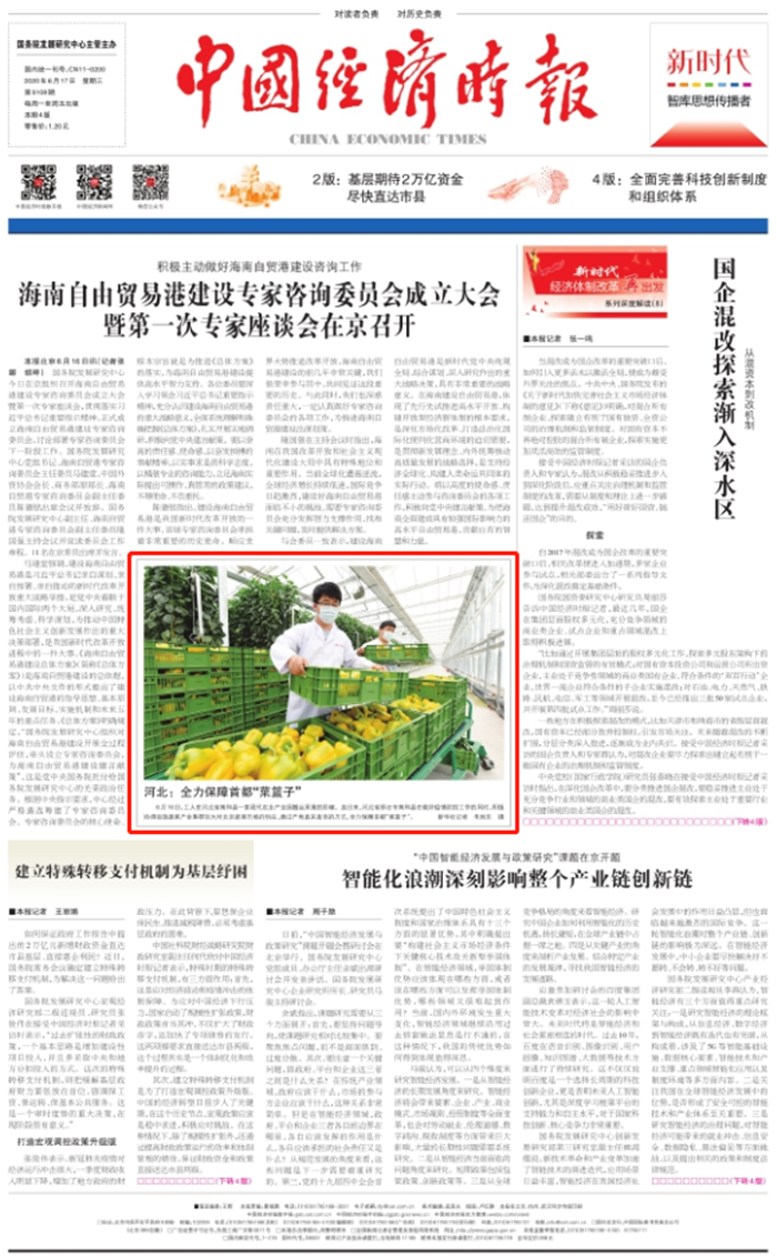 中國經濟時報頭版刊發——河北:全力保障首都“菜籃子”