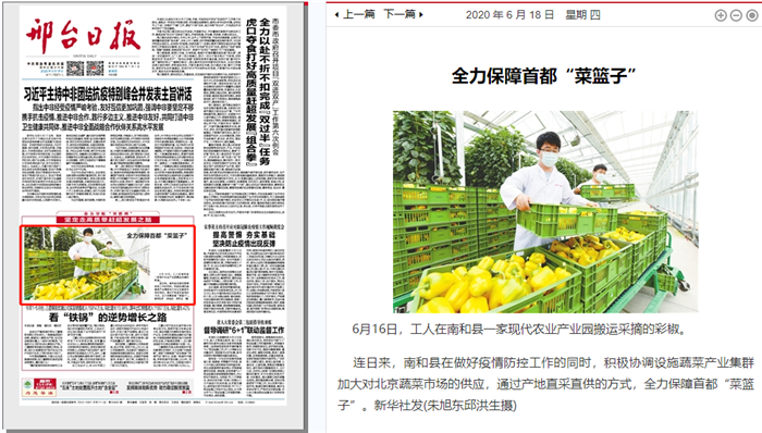 邢臺日報頭版刊發——全力保障首都“菜籃子”