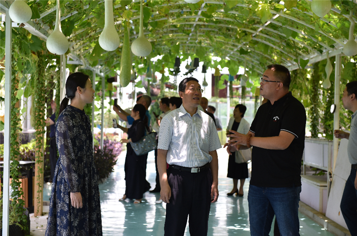▼6月19日,江蘇省科協黨組書記、副主席孫春雷,金湖縣縣長萬旭東等一行領導人到金湖水漾年華參觀調研,中農富通旗下江蘇富金農業科技發展有限公司總經理房志超陪同。