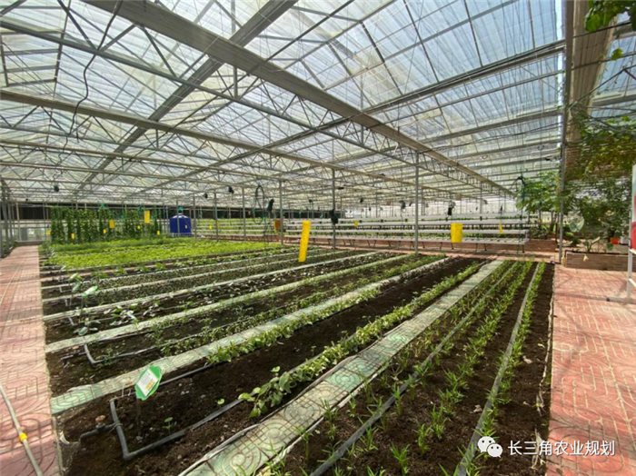 隨后調(diào)研組來到蘇星農(nóng)場與農(nóng)場負(fù)責(zé)人進(jìn)行座談。調(diào)研組了解到該農(nóng)場是溧水區(qū)首個生態(tài)農(nóng)業(yè)及光伏發(fā)電互補項目,農(nóng)場約有600畝大棚,大棚里種植有機蔬菜,與江蘇省農(nóng)科院和南京市蔬菜研究所都有合作。農(nóng)場種植的有機蔬菜專供公司食堂和內(nèi)部員工,蔬菜價格低于市場價格。由于是專供銷售不可避免產(chǎn)生浪費,但是農(nóng)場會將多余的蔬菜喂養(yǎng)池塘的魚或者將其發(fā)酵為有機肥料施用在農(nóng)田里。農(nóng)場的大棚都是農(nóng)戶承包來種植的,農(nóng)場為農(nóng)戶提供水肥一體化種植條件以及蔬菜種植技術(shù),農(nóng)戶負(fù)責(zé)種植、日常維護和采收,年收入最高可達(dá)8萬/人。
