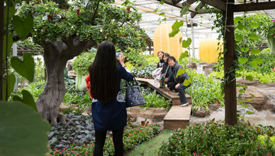 創意農業體驗區內,11000平米的連棟玻璃溫室分為“農藝華章”、“蔬藝花苑”、“和美田園”三個主題場館,薈萃了300余個新奇特果蔬、花卉品種。在這里,科技并不遙遠、農業同樣藝術,農業與創意的完美結合,拉近了都市居民與鄉村田園的心理距離,讓農業真正走入了人們的生活。