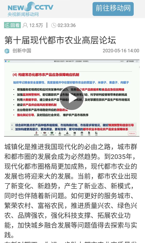 5月16日下午,由中國農業大學農業規劃科學研究所主辦,北京中農富通園藝有限公司承辦,北京農村專業技術協會北京農業嘉年華專業委員會、荷蘭南荷蘭省政府、荷蘭番茄大世界、設施農業產業國際合作聯盟、《中外農業概覽》雜志、《現代農產品銷售與消費》雜志聯合支持舉辦的第十屆現代都市農業高層論壇取得圓滿的成功。此次高層論壇首次采取線上直播的方式。據16日17點數據,共13萬余人次在線觀看了本次論壇。