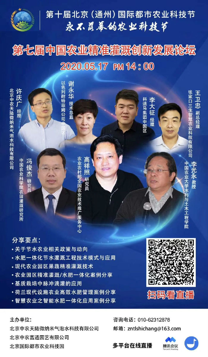 同期,中農富通還于5月17日舉辦“第七屆中國農業精準灌溉創新發展論壇”、5月18日舉辦“數字賦能農業一二三產融合專題研討會”、 5月19日舉辦“農業社會化服務專題研討會”為“第十屆北京(通州)國際都市農業科技節”的同期活動,國內外專家齊聚線上,深度探討農業發展新思維、新業態、新模式、新科技,促進產業創新與升級,迎接新時代的挑戰與機遇。