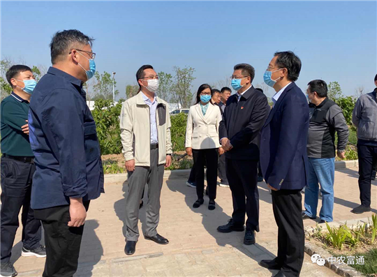 ▼4月29日上午,河南省農業農村廳副廳長劉保倉一行考察了中農富通負責的開封農業嘉年華項目現場并對河南省2020年農民豐收節主會場選址調研,祥符區區委書記李軍,市農業農村局黨組副書記、副局長劉磊,愛思嘉農旅董事長,中農富通項目開發部副總經理葉生星陪同調研并對項目進展和豐收節主會場籌備工作進行了介紹。副廳長肯定了中農富通對農業作出的貢獻,并對設施產業集群表示高度認可。