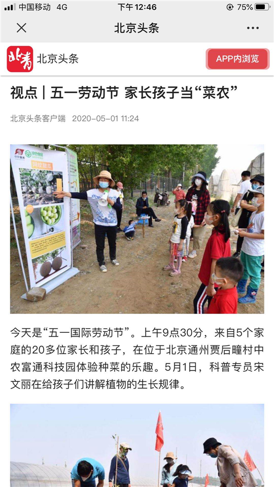 ▼五一前后,北京廣播電視報和通州時訊、通州新聞、北京頭條、北青社區報通州版微信公眾號等媒體報道北京國際都市農業科技園。
