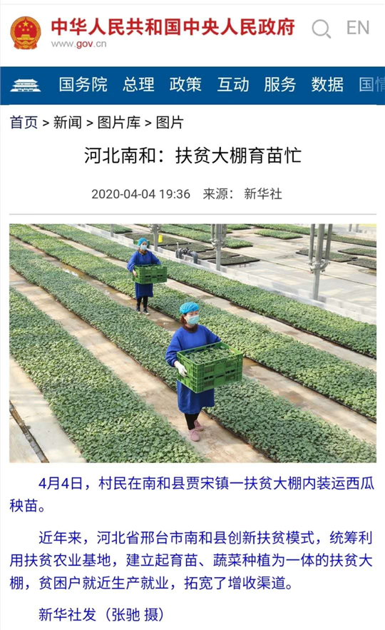 ▼4月4日,中國政府網報道了中國南和設施農業產業集群育苗、蔬菜種植為一體的扶貧模式,為貧困戶就近生產就業,拓寬了增收渠道。(新華社發 張馳 攝)