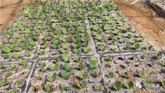 ▼中農富通分支機構--山西中農富神高原作物農業研究有限公司基地南瓜育苗。