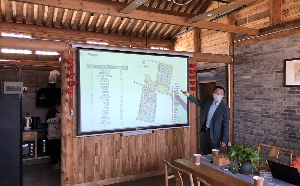 奠基儀式結(jié)束后,領(lǐng)導(dǎo)移步月季小院聽取“農(nóng)業(yè)嘉年華及三鏈同構(gòu)”工作匯報。中農(nóng)富通項目開發(fā)事業(yè)部副總經(jīng)理葉生星博士代表中農(nóng)富通向祥符區(qū)委書記匯報農(nóng)業(yè)嘉年華與產(chǎn)業(yè)集群總體規(guī)劃。