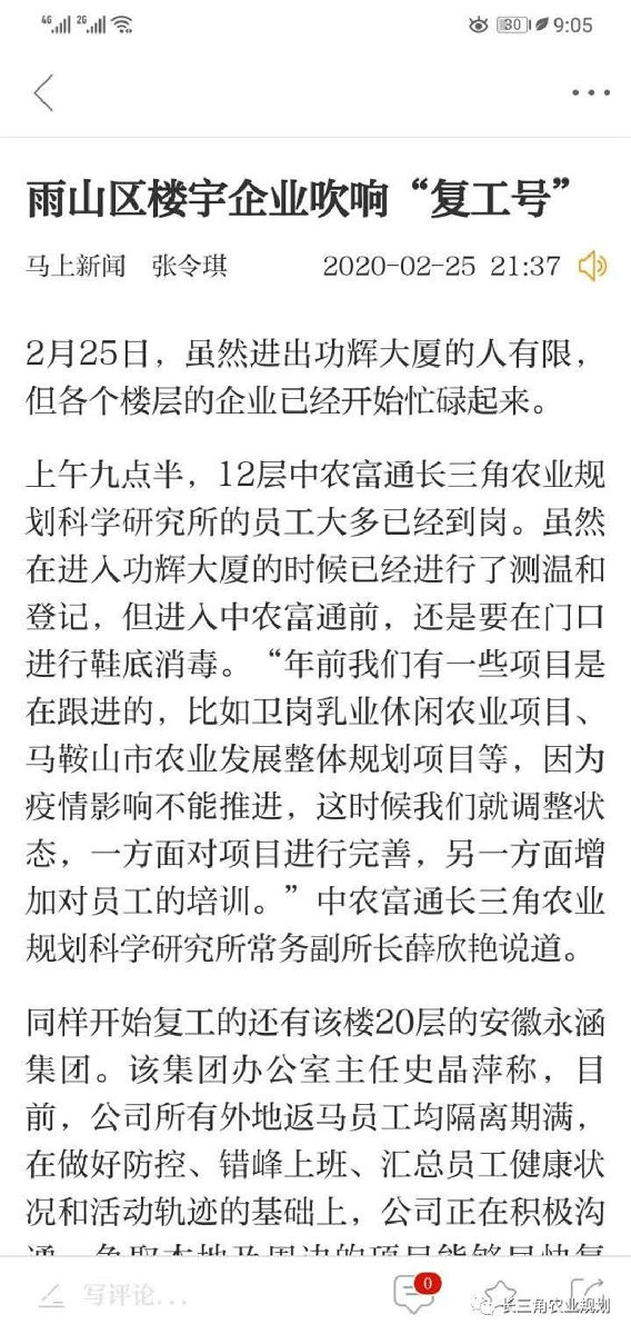 ▼自中農富通長三角農業規劃科學研究所(以下簡稱規劃所)2月10日正式復工以來,規劃所的防疫工作取得了顯著的成效,得到了當地政府的高度認可。針對規劃所的防疫情況,馬鞍山日報記者來到規劃所采訪了規劃所常務副所長薛欣艷,詳細了解了規劃所的防疫措施,以及在疫情中受到的影響和相關應對措施。