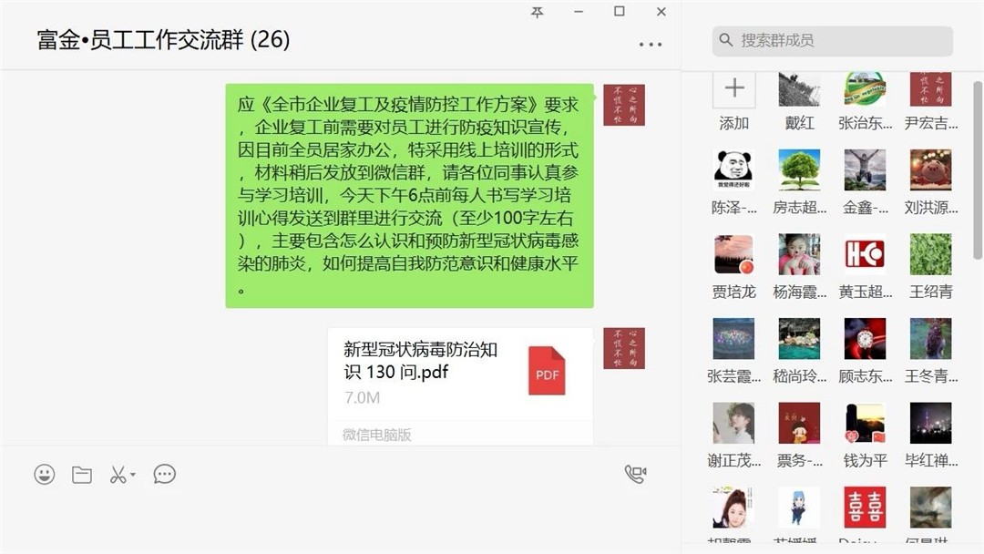 ▼金湖水漾年華積極響應政府號召,嚴格執行落實《全市企業復工及疫情防控工作方案》,抓緊抓實疫情防控工作不松勁。要求全體員工居家線上辦公,每日報備身體狀況。并通過微信群的形式開展防疫知識培訓學習,收集有關安全防疫的文件及視頻,培訓后員工在微信群內交流心得。園區成立疫情防控小組,每人都派發消毒水、口罩、手套,和一定數量的體溫計等物資,每天對園區進行全面消毒,嚴防死守,復工前全面做好園區環境衛生和消毒工作,有序推進園區復工準備工作。