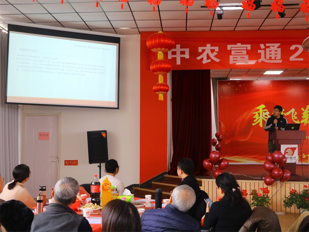 中國農業大學教授、中國農業大學農業規劃科學研究所所長、中農富通首席專家張天柱總結了公司2019年度多方面取得的優異成績,創新研發有了新的突破、制度建設更加完善、團隊向心力大大增強等,這對未來中農富通上市都打下了堅實的基礎,當然成績的取得離不開團隊每一個成員和社會各界人士的大力支持。并提出了2020年的要求和任務,練好外功,強化內功,不負韶華,砥礪前行,再創富通新的更大的輝煌。