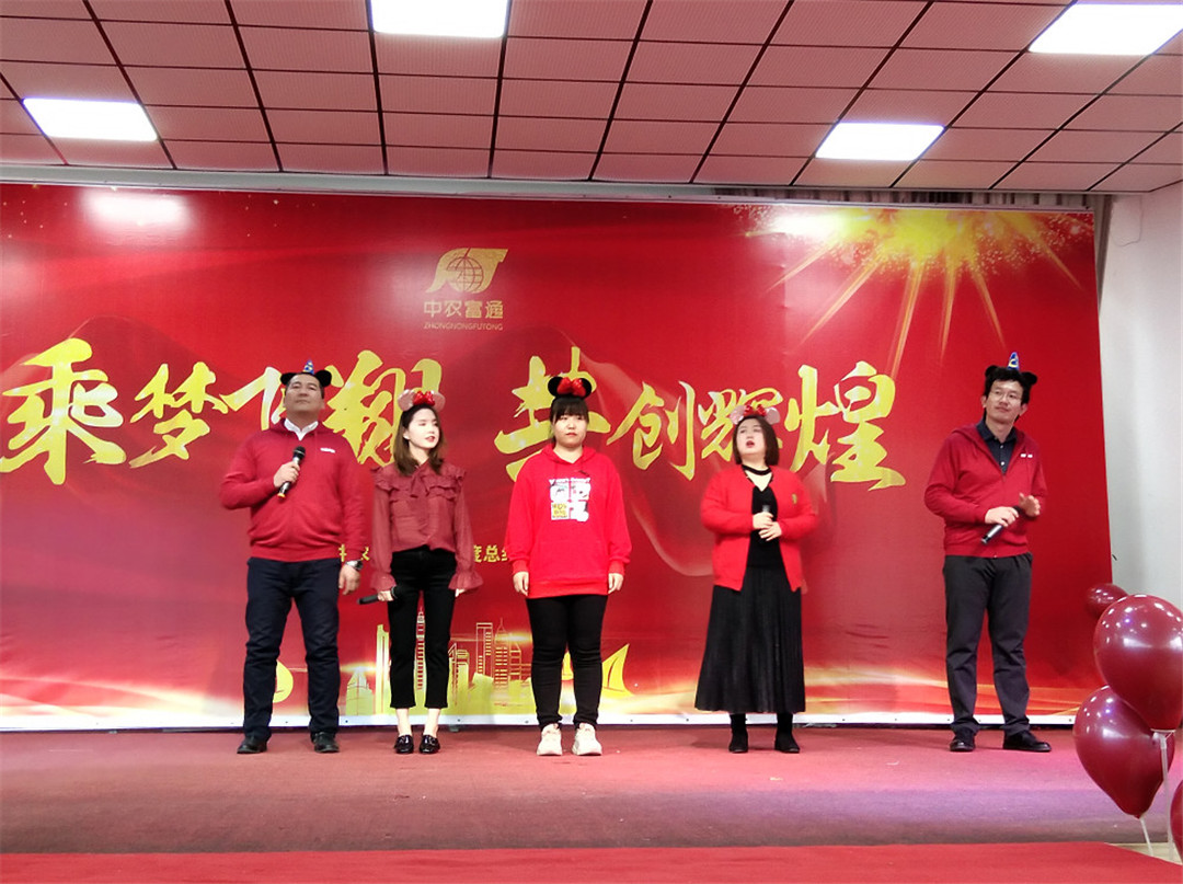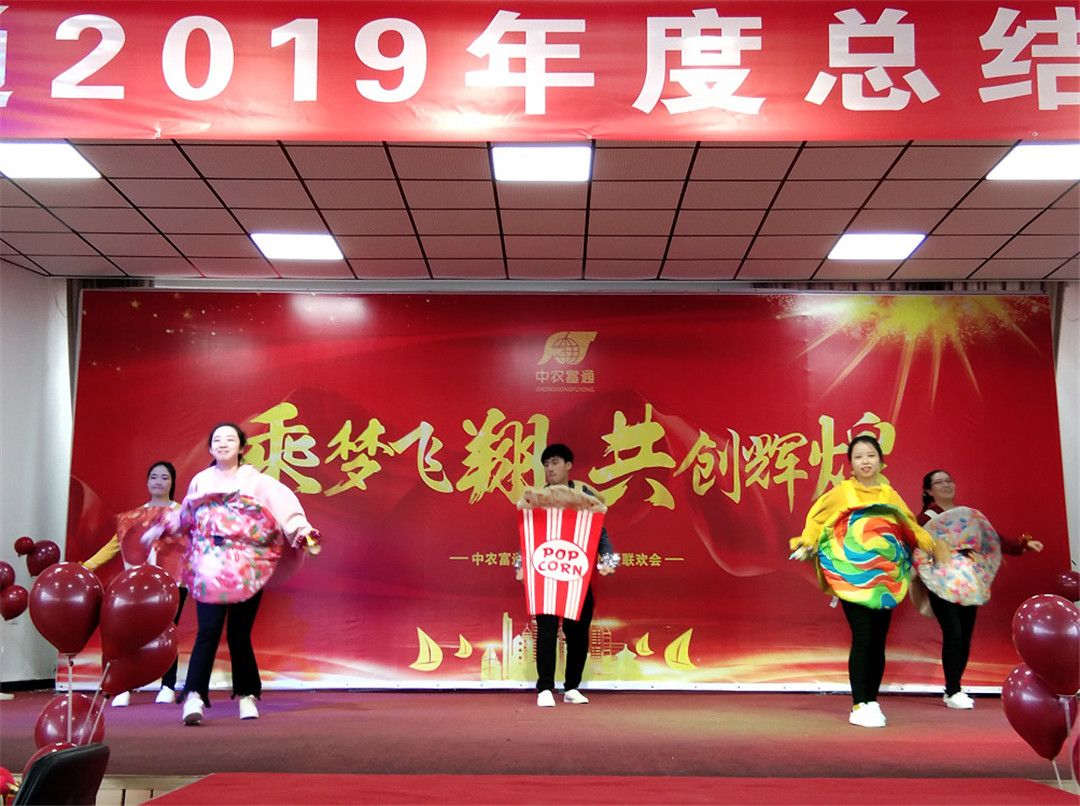 中農富通2019新年聯歡會精彩紛呈,員工及多位專家各顯神通,大家都展示了自己精心準備的節目,有精彩的舞蹈、動聽的歌曲、逗趣的小品、雙簧、三句半、詩朗誦、大合唱等,大家用心的準備,辛苦的排練,最終在舞臺上完美的呈現,節目當中還穿插了幸運抽獎環節,令現場火熱沸騰,將現場氣氛一次次的推向高潮。