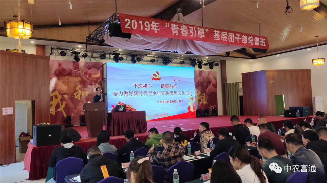 ▼12月18日,2019年“青春引擎”玉林基層團干部培訓班在廣西中農富玉開班,玉林黨校市情研究室主任黃飛為學員授課《不忘初心、牢記使命》主題教育。