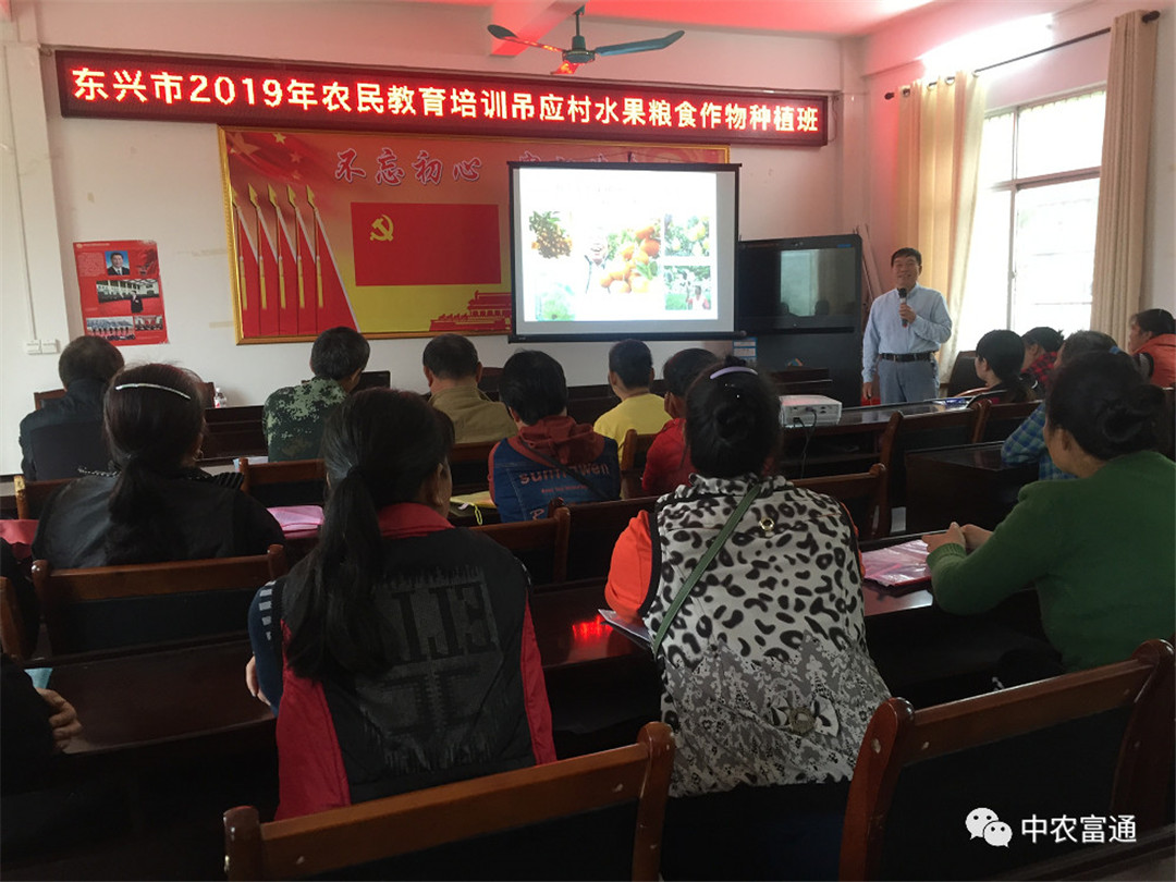 ▼12月開始,東興市2019年農民教育培訓吊應村水果糧食作物種植班在中農富玉開班,下圖為推廣研究員李鼎偉為學員們授課《南方水果種植技術》課程。