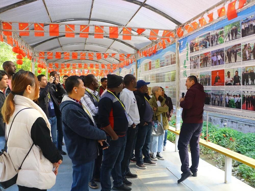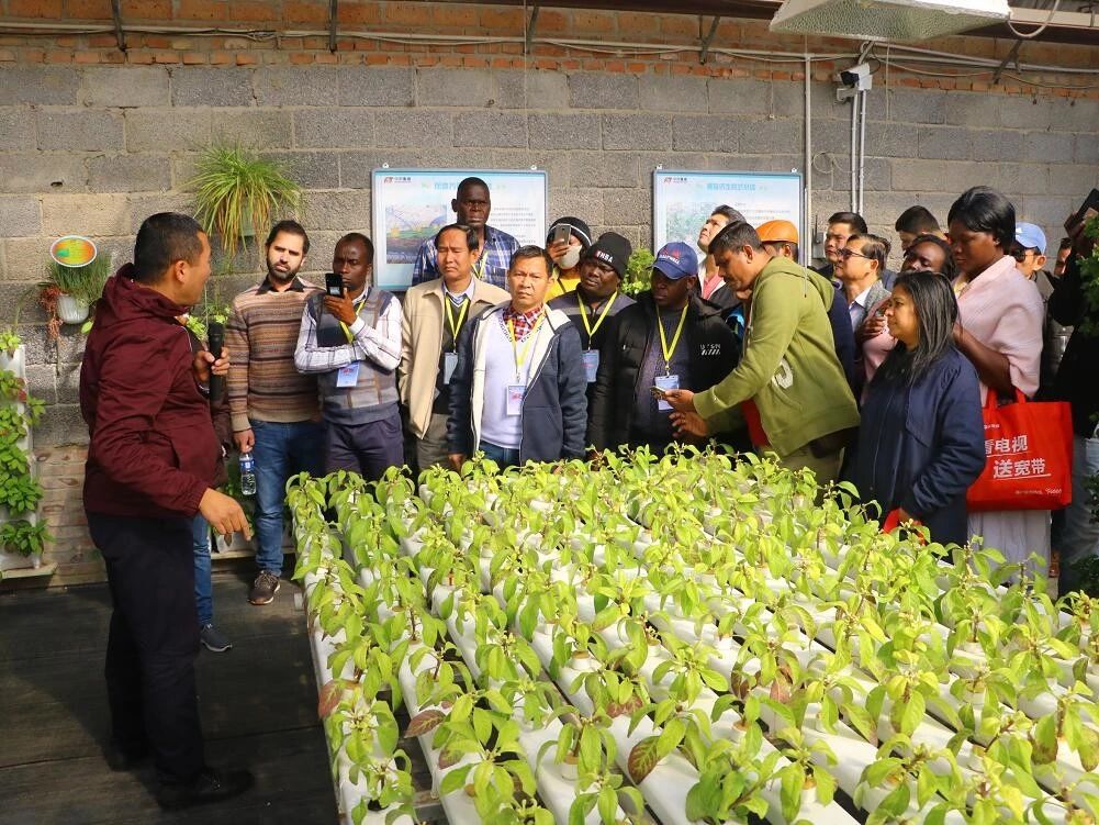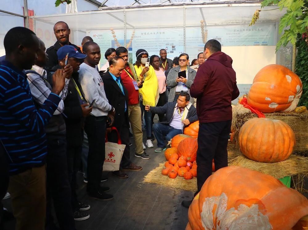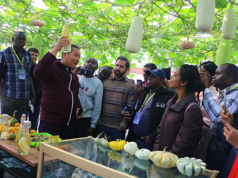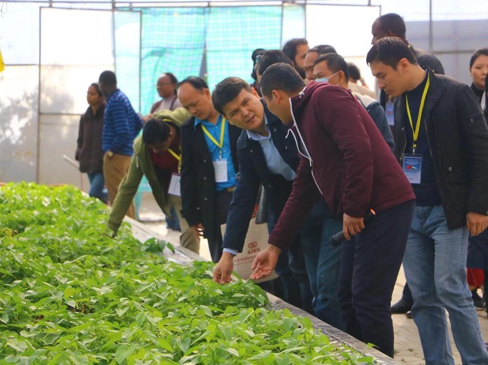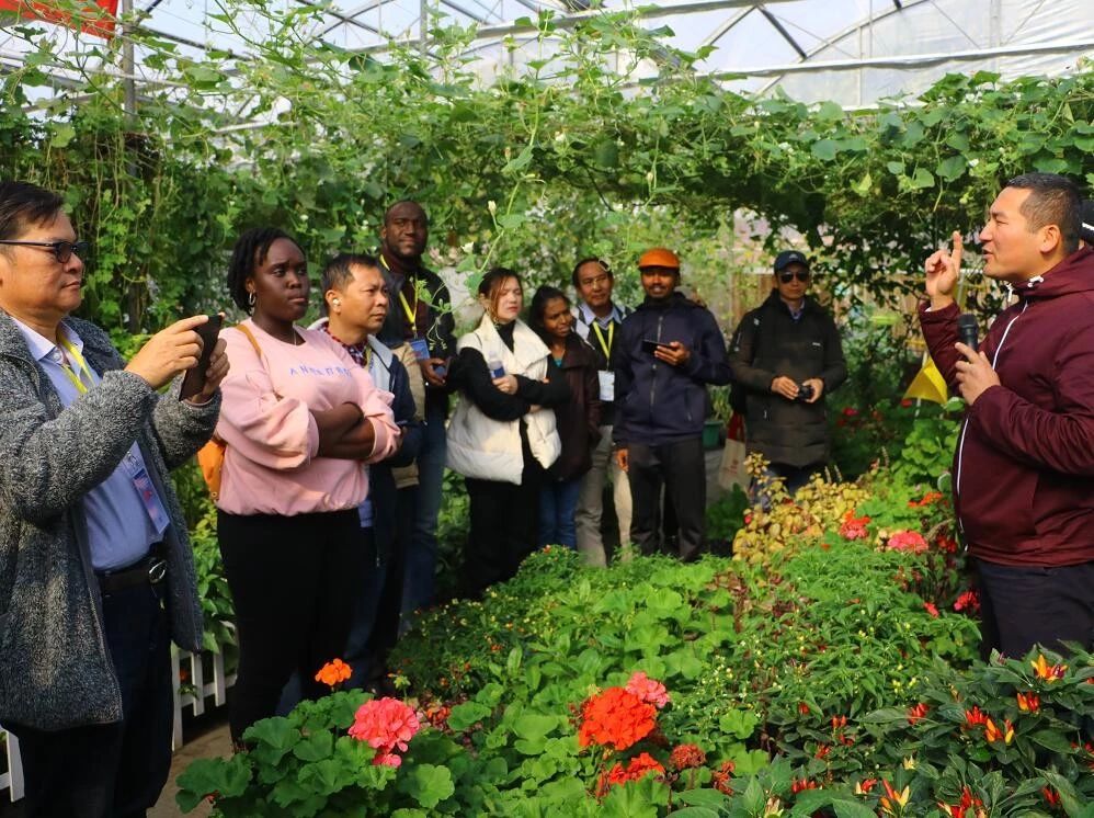 ▼10月29日,商務部國際商務官員研修學院--2019年發展中國家落實2030可持續發展議程研修班柬埔寨、肯尼亞、利比里亞、馬拉維、蒙古、斯里蘭卡等12個國家處級干部到中農富通示范基地——北京國際都市農業科技園參觀考察,考察團對科技園高科技栽培模式、新奇特果蔬等尤為感興趣,紛紛大加贊賞。