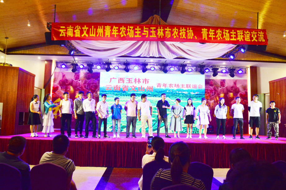 ▼10月26日,云南省文山州與廣西玉林市農技協、青年農場主們在廣西玉林“五彩田園”舉辦了一場別開生面的聯誼會。本次聯誼會由云南省文山州農廣校、玉林市農村專業技術協會、玉林市農技協廣西中農富玉國際農業科技有限公司聯合舉辦,以加強兩地青年農場主之間的交流與資源共享。