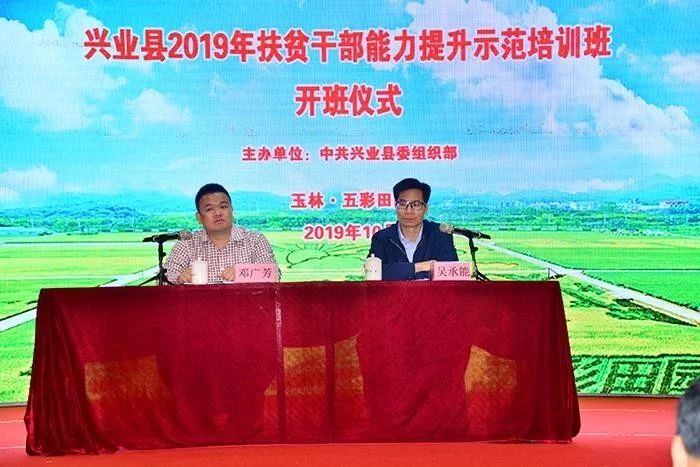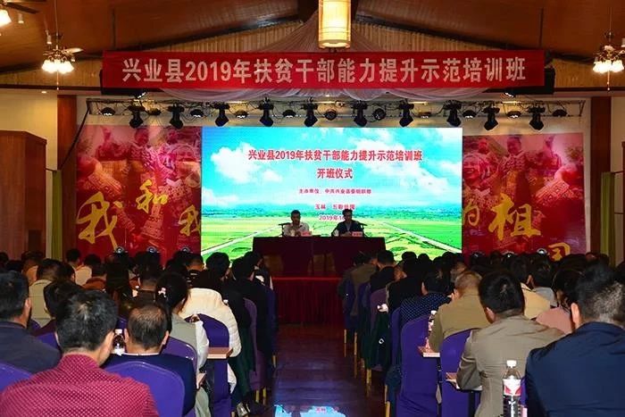 ▼10月28日,由中共興業縣委組織部主辦的“興業縣2019年扶貧干部能力提升示范培訓班”在玉林“五彩田園”開班。來自興業縣的300名鄉鎮扶貧干部將參加為期2天的培訓,以進一步轉達興業縣鄉村干部的觀念,拓展創新扶貧干部的思路和方法,提振脫貧攻堅的決定和信心。