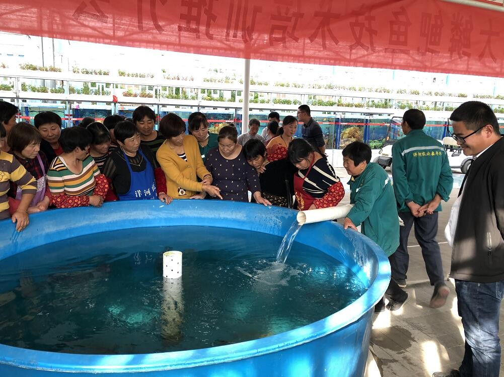 ▼11月1日,宿遷市農業科學研究院主任為洋河農業嘉年華場館技術工人培訓蟹池套養大鱗鲃魚技術。