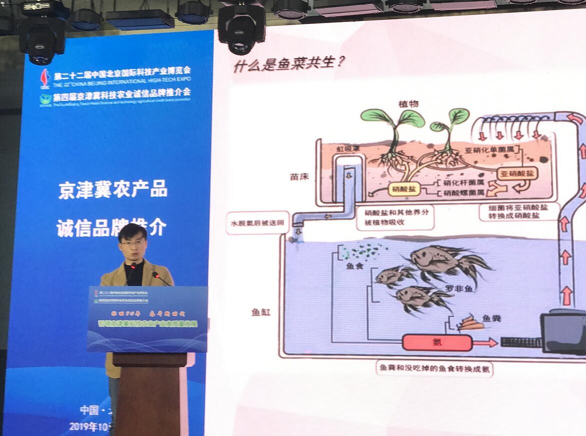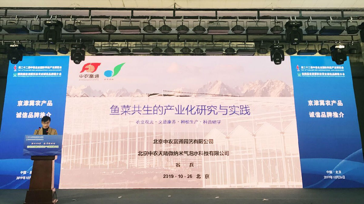 ▼10月26日,北京中農天陸微納米氣泡水科技有限公司應邀參加以“壯麗70年·奮斗新時代-引領京津冀科技農業產業高質量發展”為主題的第二十二屆中國北京國際科技產業博覽會-第四屆京津冀科技農業誠信品牌推介會。中農天陸研發部水產工程師谷兵代表公司進行“魚菜共生產業化研究與實踐”項目推介,受到高度關注。