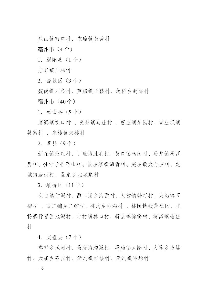 根據(jù)中共安徽省農(nóng)村工作領(lǐng)導(dǎo)小組辦公室《關(guān)于推進農(nóng)村人居環(huán)境整治示范村創(chuàng)建的指導(dǎo)意見(試行)》(皖農(nóng)工辦〔2019〕9號)和《關(guān)于印發(fā)安徽省美麗鄉(xiāng)村示范村和重點示范村認(rèn)定辦法的通知》(皖農(nóng)工辦〔2019〕18號)等文件精神,在各地自主創(chuàng)建和自查自評的基礎(chǔ)上,省級組織現(xiàn)場復(fù)核,認(rèn)定淮北市濉溪縣劉橋鎮(zhèn)王堰村等104個行政村為美麗鄉(xiāng)村重點示范村,認(rèn)定合肥市巢湖市烔煬鎮(zhèn)大程行政村等374個行政村為美麗鄉(xiāng)村示范村(名單均見附件)。