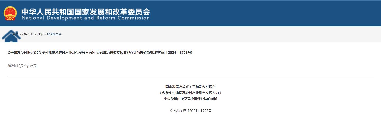 農業農村部,各省、自治區、直轄市及計劃單列市、新疆生產建設兵團發展改革委: 為貫徹落實黨中央、國務院決策部署,進一步規范鄉村振興中央預算內投資專項管理,根據《......