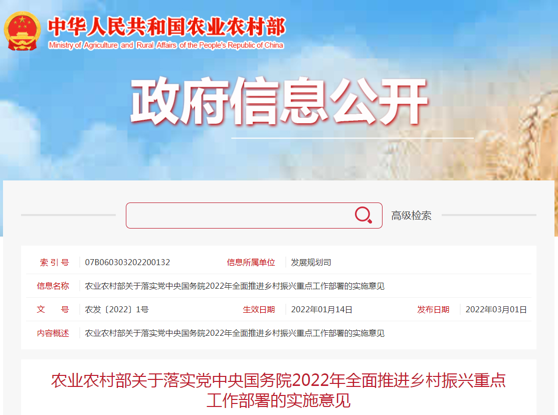 為深入貫徹中央農村工作會議、2022年中央一號文件精神,按照《農業農村部關于落實黨中央國務院2022年全面推進鄉村振興重點工作部署的實施意見》要求,加快推動......