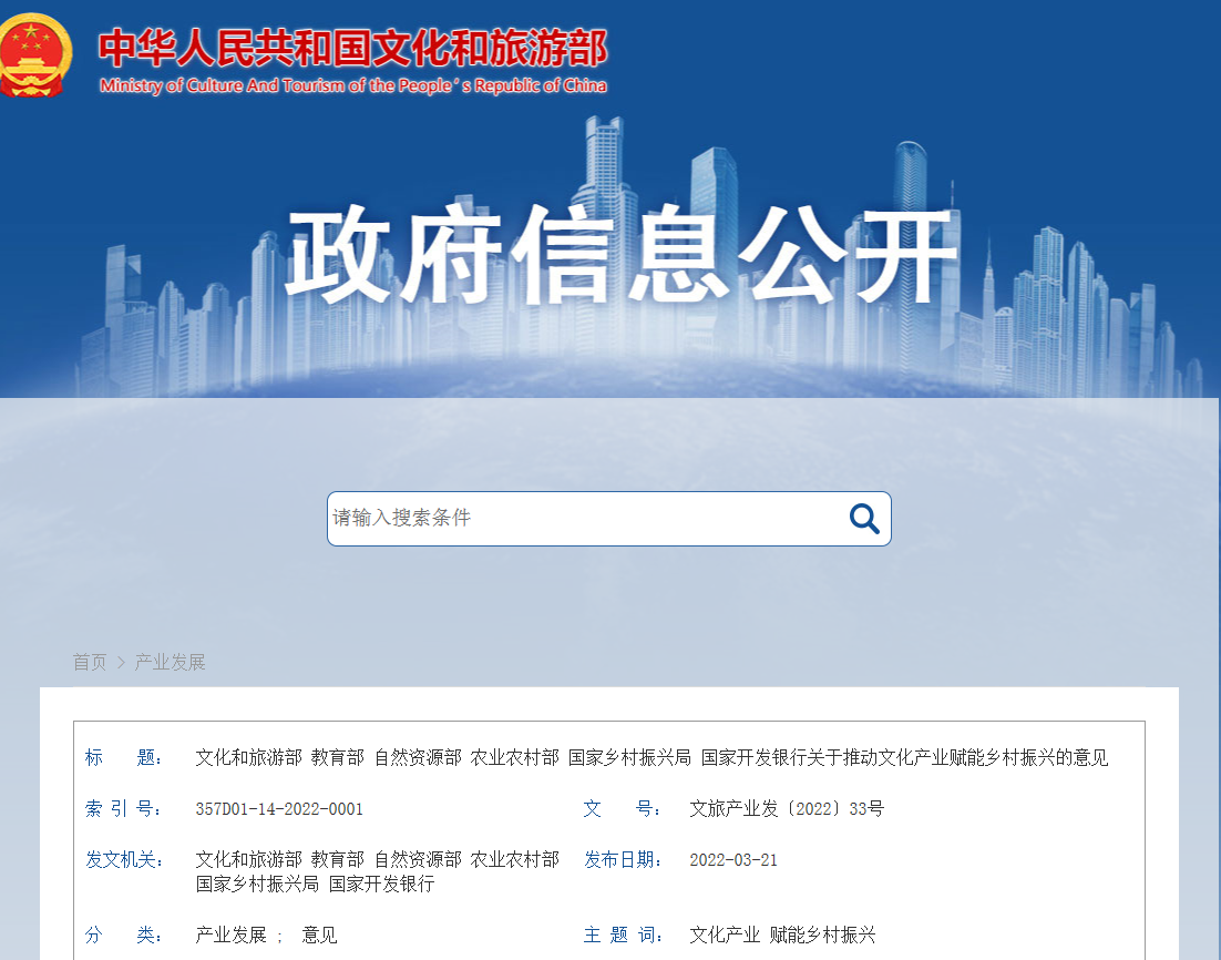 為全面貫徹鄉村振興戰略,落實《中共中央 國務院關于做好2022年全面推進鄉村振興重點工作的意見》提出的“啟動實施文化產業賦能鄉村振興計劃”,以文化產業賦能鄉......