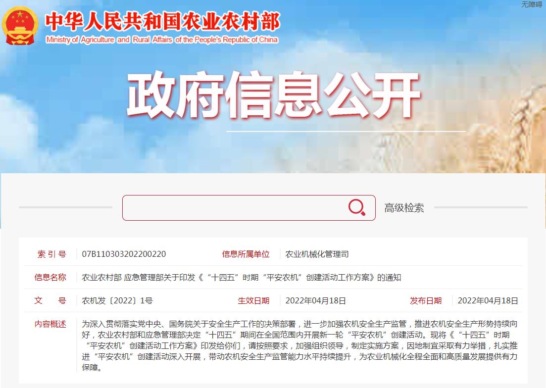 “平安農機”創建活動是貫徹落實黨中央、國務院關于加強安全生產工作決策部署、強化農機安全生產工作的重要抓手。為示范帶動農機安全生產監管工作落細落小,堅決遏制重特大......