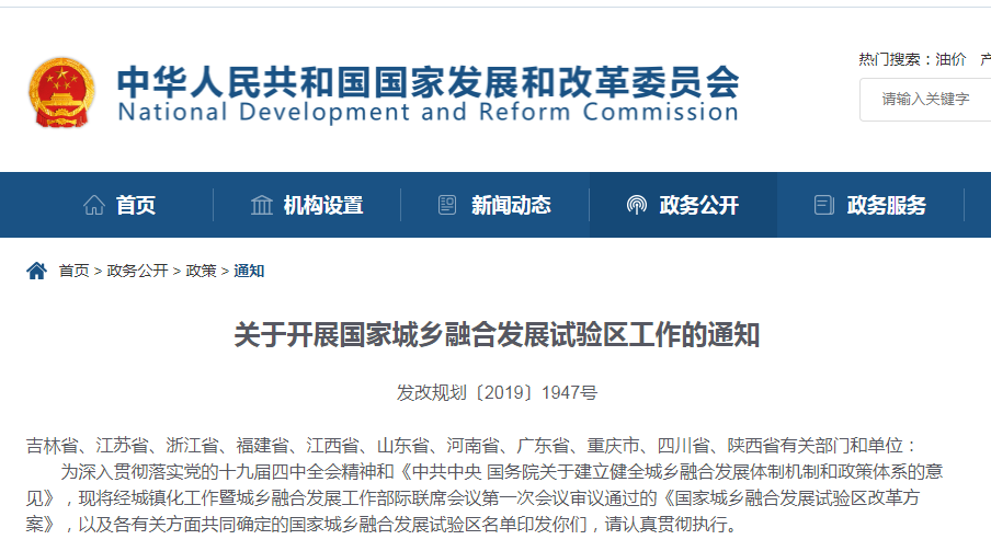 近日,國家發改委、中央農村工作領導小組辦公室、農業農村部等十八部門聯合印發《國家城鄉融合發展試驗區改革方案》(以下簡稱《方案》),11個地區被確定為國家城鄉融合......