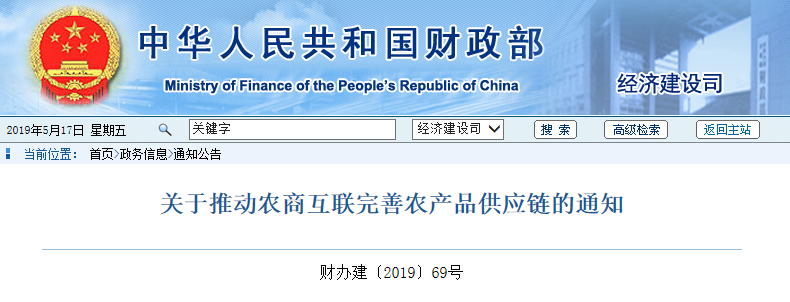 關于推動農商互聯完善農產品供應鏈的通知 各省、自治區、直轄市、計劃單列市財政、商務主管部門:為深入貫徹黨的十九大精神,認真落實《中共中央 國務院關于堅......