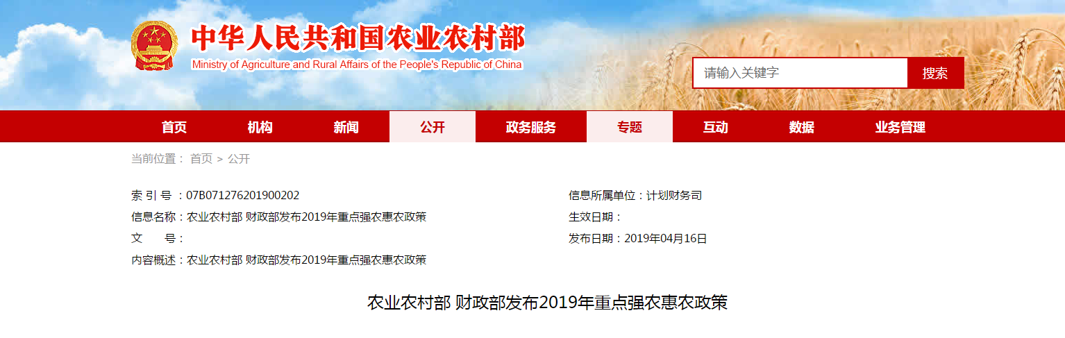 2019年,貫徹落實(shí)中央農(nóng)村工作會(huì)議、中央1號(hào)文件和全國(guó)“兩會(huì)”精神,圍繞實(shí)施鄉(xiāng)村振興戰(zhàn)略,深入推進(jìn)農(nóng)業(yè)供給側(cè)結(jié)構(gòu)性改革,國(guó)家將繼續(xù)加大支農(nóng)投入,強(qiáng)化項(xiàng)目統(tǒng)籌整......