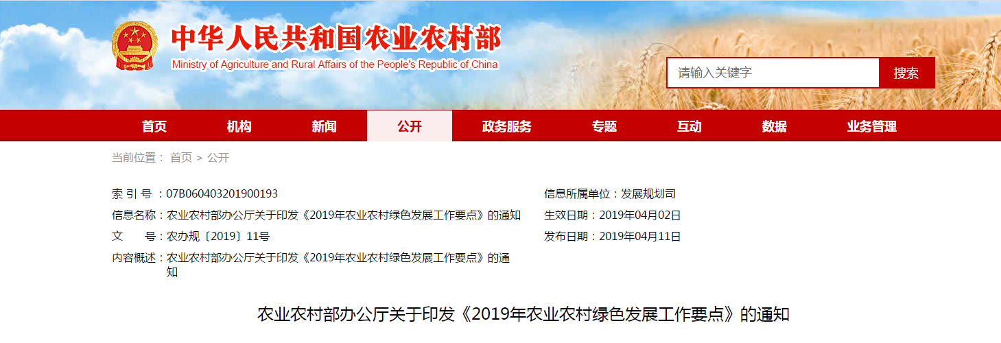 為貫徹落實(shí)中辦國(guó)辦《關(guān)于創(chuàng)新體制機(jī)制推進(jìn)農(nóng)業(yè)綠色發(fā)展的意見(jiàn)》和2019年中央一號(hào)文件精神,按照中央農(nóng)村工作會(huì)議、全國(guó)農(nóng)業(yè)農(nóng)村廳局長(zhǎng)會(huì)議部署要求,努力提升農(nóng)業(yè)農(nóng)村......