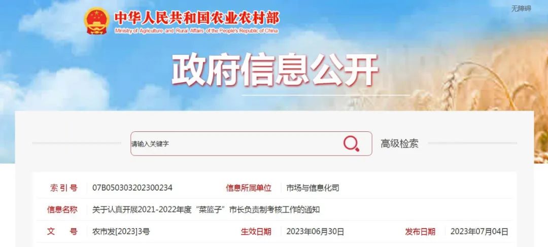 各直轄市、計劃單列市、省會城市人民政府: 為深入貫徹黨的二十大精神,認真落實黨中央、國務院關于嚴格“菜籃子”市長負責制考核的要求,根據《“菜籃子”市長負責制考......